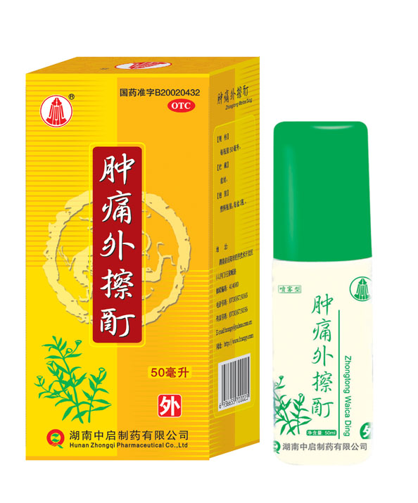 腫痛外擦酊主要是由墨旱蓮、大黃、冰片、樟腦等純天然藥物經(jīng)過科學的方法制作而成。 方中君藥大黃味苦性寒,功能瀉熱毒,破積滯,行淤血,常以外用。臣藥墨旱蓮味甘酸性涼,功具“涼血養(yǎng)陰,退火消腫”(《分類草藥性》、《本草經(jīng)疏》)。佐藥冰片,辛苦性涼,功擅通壅塞,散郁火,消腫止痛,并以其辛香走竄之氣,助君臣二藥通透肌膚,直達病所而迅速發(fā)揮作用;樟腦味辛性熱,方中用量少,以其味辛,能助冰片之透達,以其性熱并可協(xié)調(diào)諸藥,防前藥之過于寒涼而凝滯氣血為使藥。全方組合具有清熱解毒,活血和營、消腫止痛之功效。本方擇藥精當,以酊劑外用,使藥力直達藥所,見效快,使用方便。
