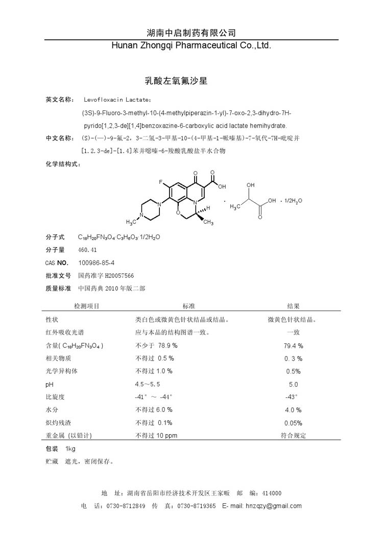 乳酸左氧氟沙星